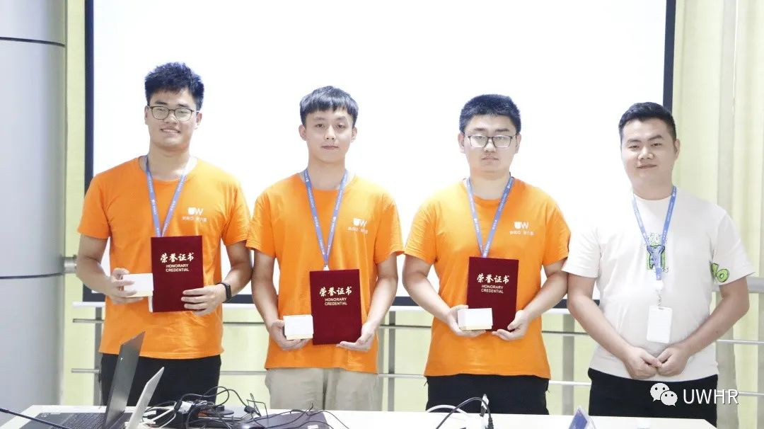 人力资源部蒋文、新能源汽车事业部朱先杰、新能源汽车事业部朱正元(从左到右依次排列)