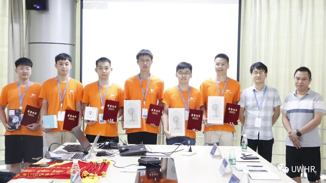 3C电子事业部杨金沙、新能源汽车事业部朱先杰、新能源汽车事业部李明辉、新能源装备事业部林焕森、激光工艺研发中心周少鹏、3C电子事业部蒙春伟(从左到右依次排列)