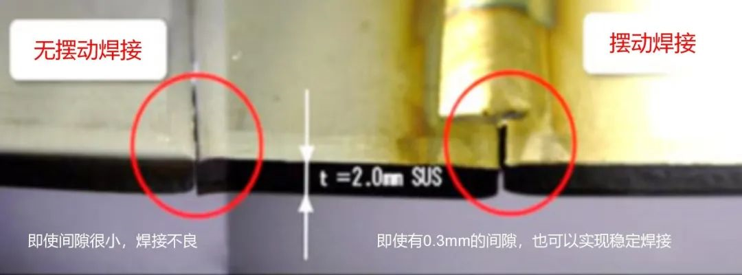 目前,金年会激光在轻型手持式摆动焊接头方面也取得了很好的进展,如上图所示,即使需要焊接的工件有0.3mm的间隙,也能实现稳定的焊接。