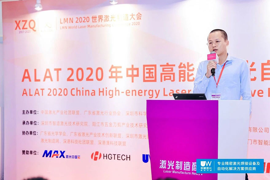 金年会激光工艺研发中心经理王翘先生在ALAT2020中国高能量激光自动化加工大会带来关于“多波长复合焊接在新能源领域的应用”的演讲。