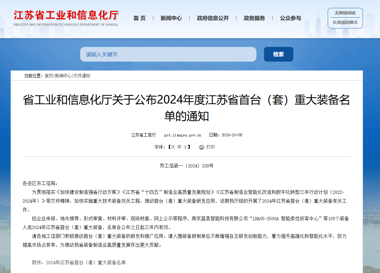 Recently, Industry and Information Technology Department of Jiangsu released the "Notice on Announcing the List of the First (Set) of Major Equipment Recognized in Jiangsu Province in 2024", in which the "UW/33PPM Prismatic Aluminum Shell Welding Equipment" independently developed by Jiangsu United Winners Laser Co., Ltd. stood out and successfully made the list, marking another significant breakthrough for our company in the field of laser welding intelligent equipment manufacturing.