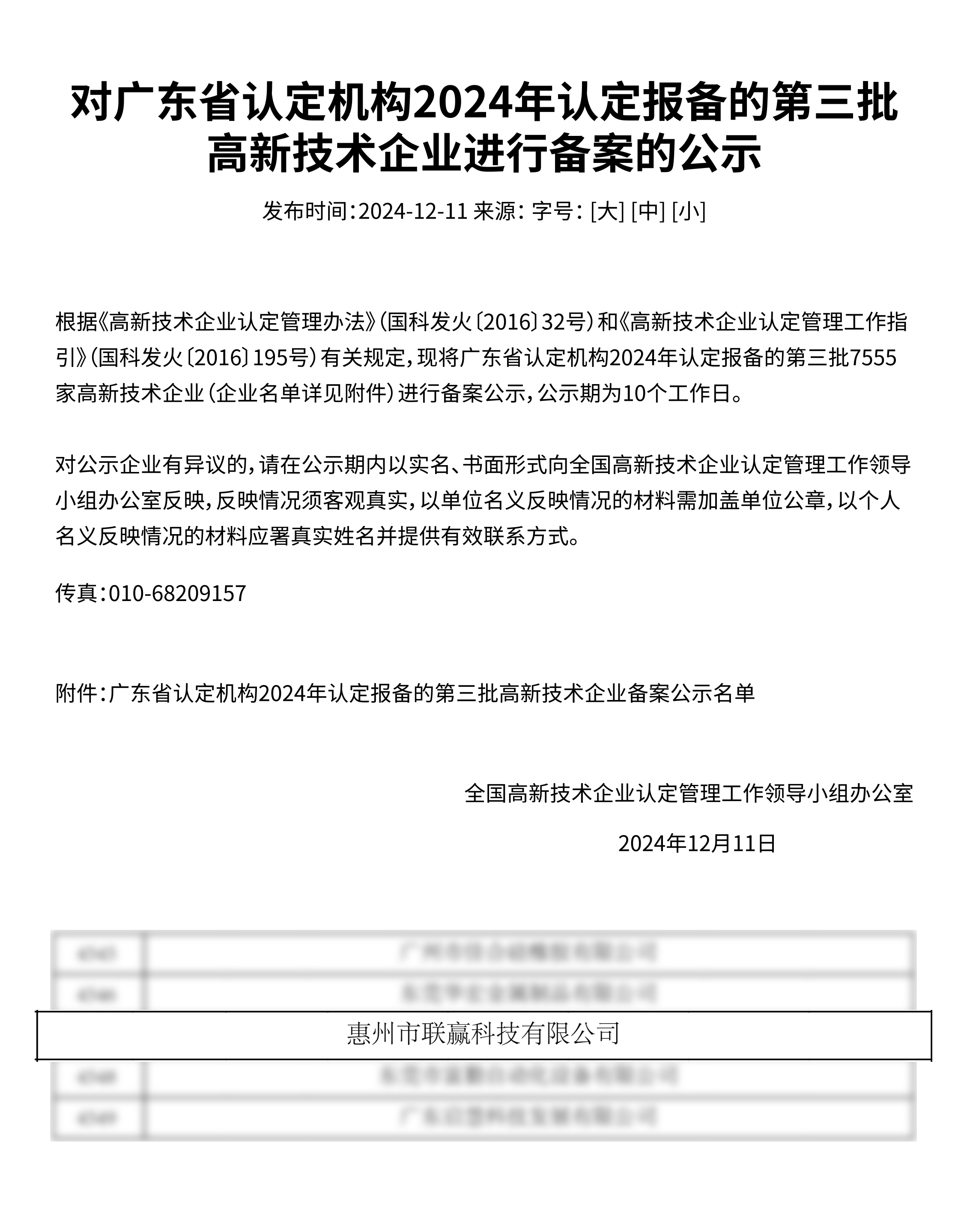 On December 11, 2024, in accordance with the strict standards of the "High and New Technology Enterprise Recognition and Management Measures" (National Science and Technology Commission, Ministry of Finance, State Administration of Taxation [2016] No. 32) and the "High and New Technology Enterprise Recognition Management Work Guidelines" (National Science and Technology Commission, Ministry of Finance, State Administration of Taxation [2016] No. 195), the National High and New Technology Enterprise Recognition Management Work Leading Group Office issued the "Announcement on the Record Filing of the Third Batch of High and New Technology Enterprises Recognized and Filed by the Guangdong Province Recognition Organization in 2024". After evaluation and public announcement, Huizhou United Winners Technology Co., Ltd., with its outstanding contribution to the industry and continuous innovation capability, has officially passed the national high and new technology enterprise recognition!