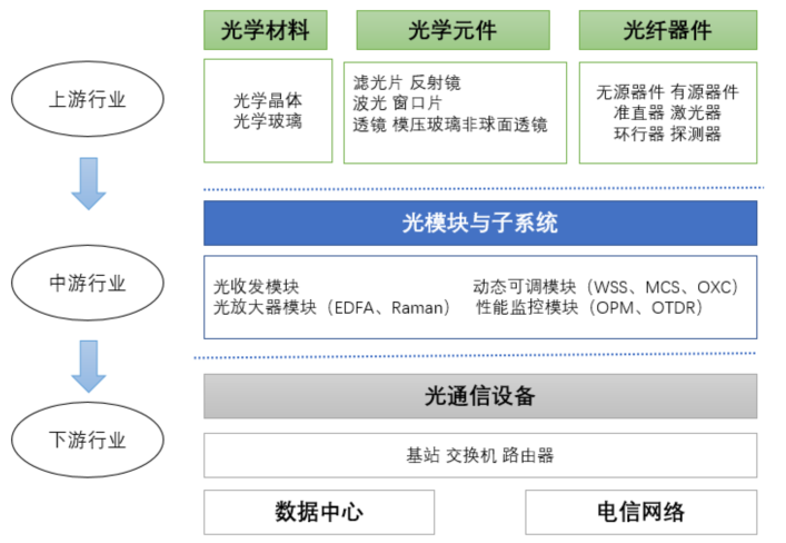 要了解激光焊接在光通信行业的应用,先看一张图,直观的了解一下光通信行业的一个上下游产业链情况。