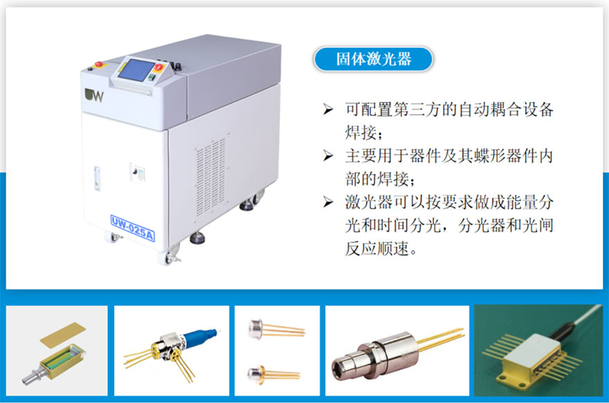 其实,金年会激光自成立就开始耕耘光通讯行业。其中UW-YAG固体激光器就是主要是用于焊接光通信的器件产品,其可配置第三方的自动耦合设备焊接,且激光器可以按要求做成能量分光和时间分光,分光器和光闸反应顺速。