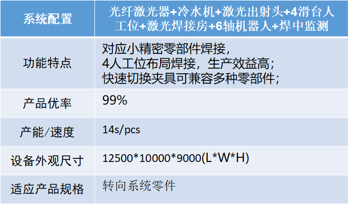 1、可采用多旋转台工位,降低上下料节拍,提升激光焊利用率,提高节拍;