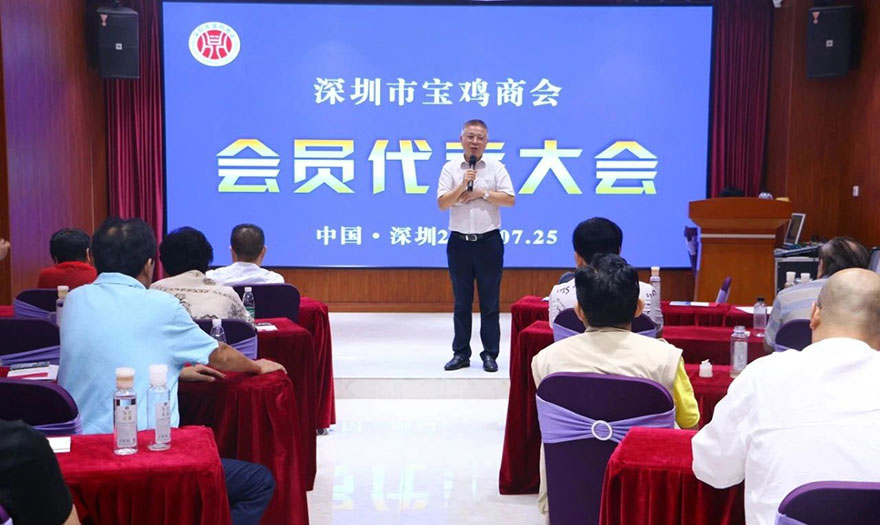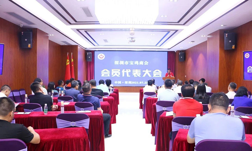 7月25日,深圳市宝鸡商会三届三次会员代表大会暨换届选举大会在深圳市智慧谷创成汇一楼报告厅顺利召开!宝鸡市政府驻深联络处冯宝平主任、原深圳市政协主任兼深圳市政协港澳台侨和外事委员会专职副主任董兵团和全体会员代表,以及部分在深宝鸡籍老领导、书法艺术家、企业家等行业知名专家60余人出席了此次大会。