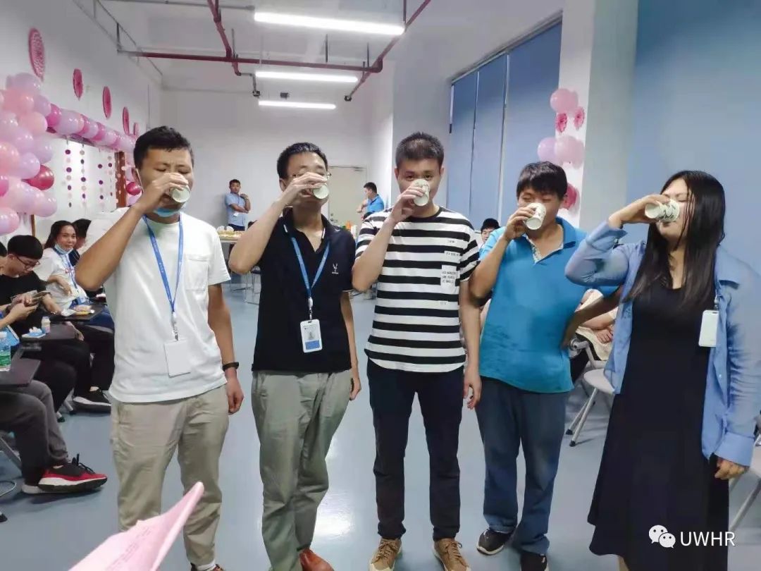 小游戏胜利的小伙伴获得精美定制纪念品一份,笑容荡漾在脸上。而败方则需要进行心跳挑战——接受品尝不同饮品的惩罚。虽是惩罚,而大家心态极佳,共同举杯欢庆这不同凡响的一日。