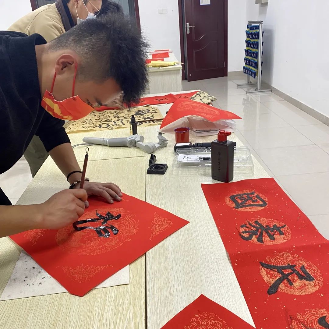 今天公司举办写春联活动,涌现了很多小能手。大家欢聚一堂,书写新年春联,为公司添福气、集“虎”气、祝愿新的一年公司更上一层楼!