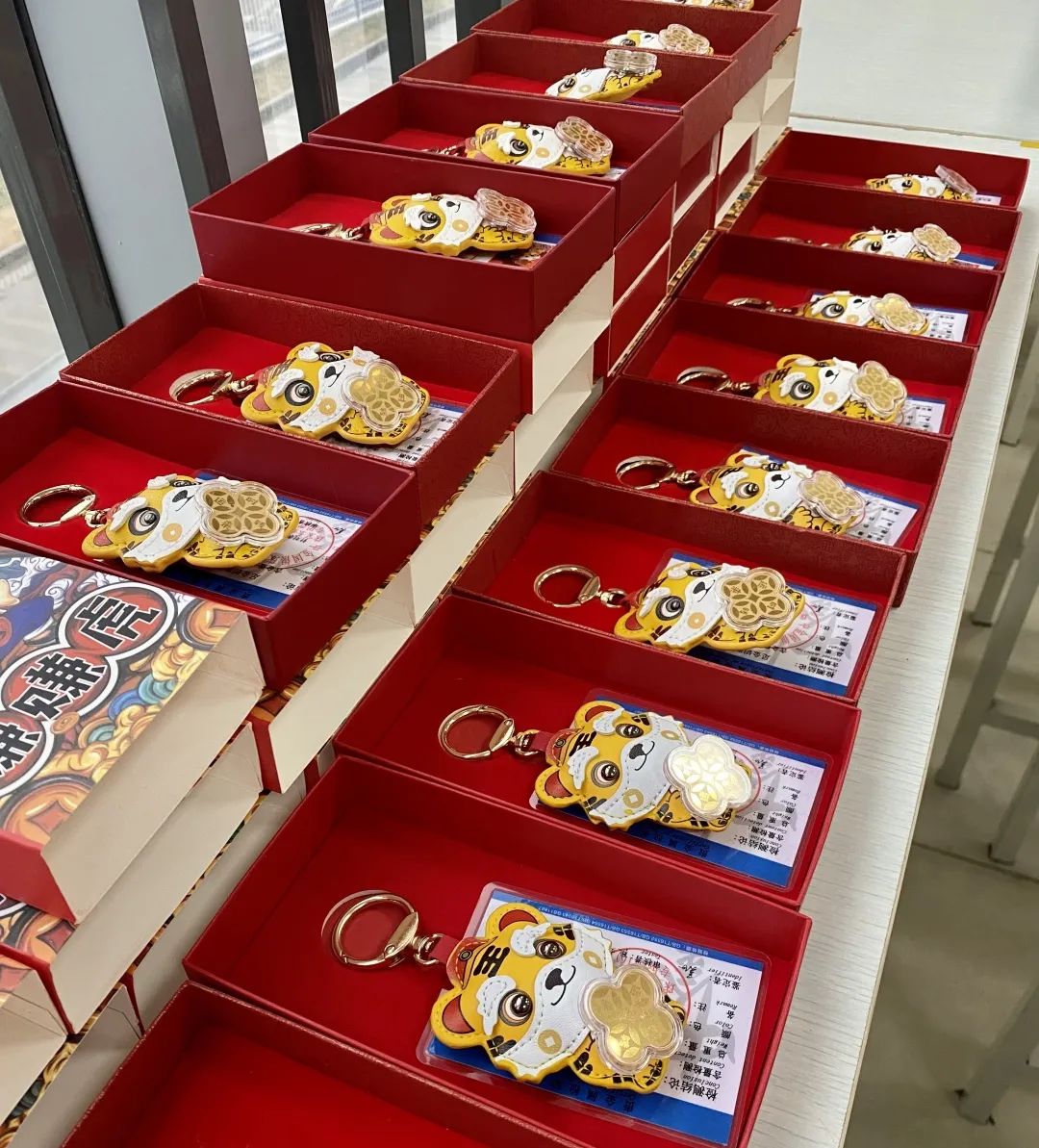 公司也准备了精致的纪念品喔,大家领到后也都感到十分开心。