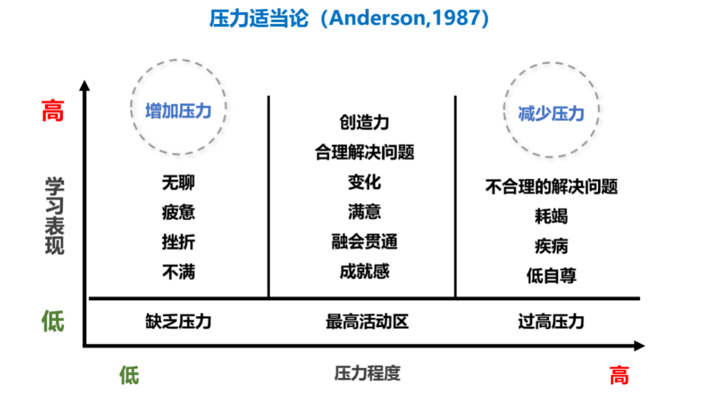 没有压力,可能会使人失去动力,停滞不前。过度的压力又会使人陷入焦虑,影响学习效率和已有水平的发挥。而适度的压力可以激发人的干劲和潜能,提高学习效率。