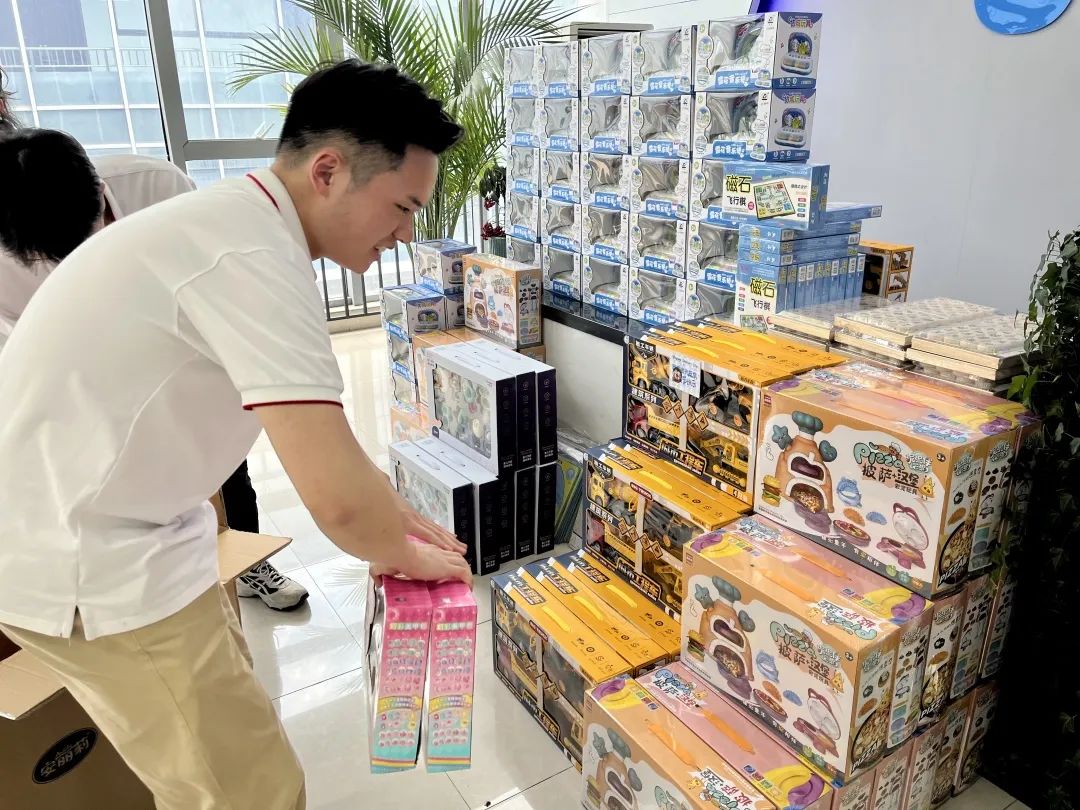 各部门前来领取福利啦,看看现场的情况吧。不同年龄阶段的男宝宝、女宝宝都有不一样的礼物,现场琳琅满目,负责领取的大朋友们都眼红起了这些可爱的玩具。