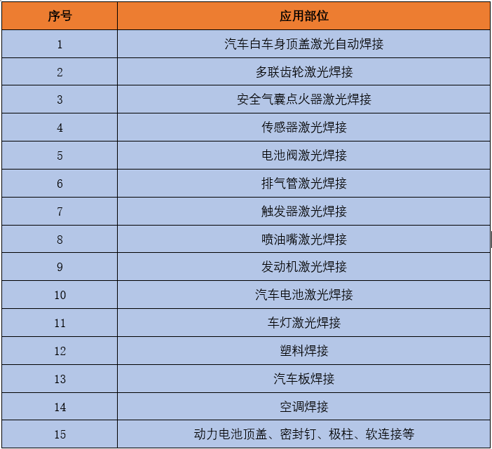 图表 1 激光焊接技术在汽车制造工业中的应用部位