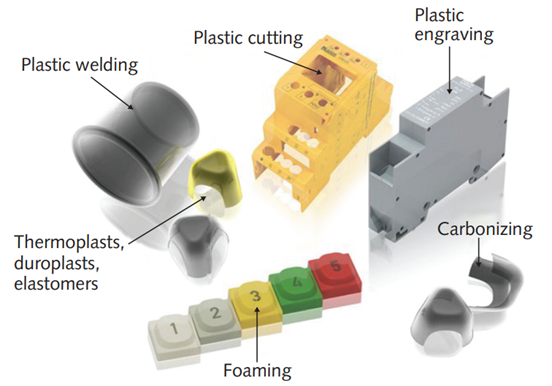 工业激光器被广泛应用于工程塑料的各种加工,服务着众多行业市场。一些常见的塑料加工应用包括激光打标、激光切割和激光焊接(见图1)。激光塑料焊接主要应用在汽车和医疗器械领域。