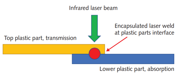 传统的塑料焊接技术,如超声波或热冲压,两块塑料焊接在一起都不可避免地影响外表面。非接触激光塑料焊接,利用激光在聚合物链中部分透射、反射、散射以及吸收实现焊接。通过选择合适的激光参数,可以在塑料的选定位置产生足够的热量,以实现熔化和粘接。