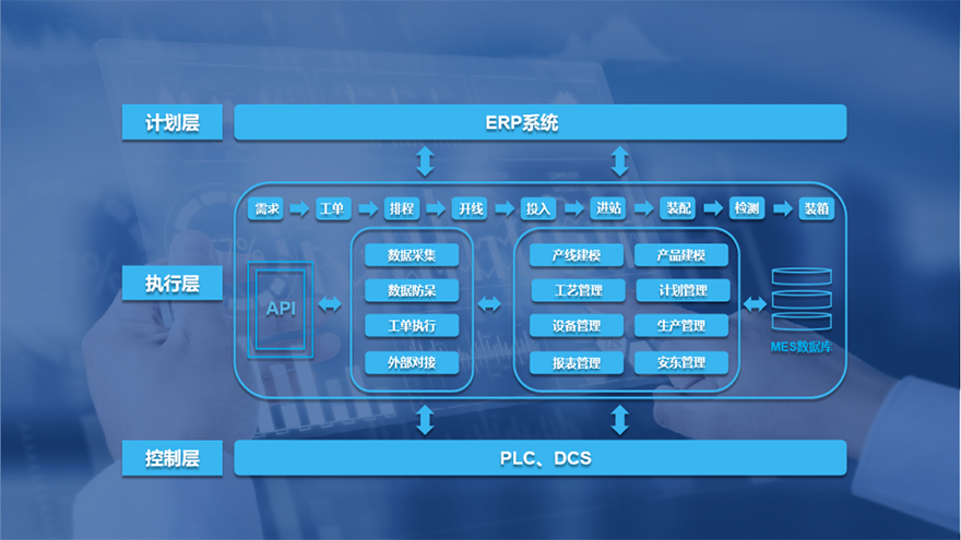 MES是智能制造建设的基础,它覆盖了整个智能制造的生产过程,与企业的各项业务紧密相连。作为车间级承上启下的综合管理系统,MES向下采集底层自动化控制系统及各类设备信息,对上承接ERP下达的生产计划,有效帮助企业在透明化生产、敏捷性生产、生产可追溯、生产质量改善、及时预警、绩效分析等诸多方面提升工厂的运营绩效。