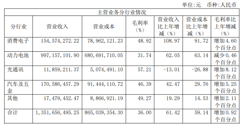 如上图所示,报告期内,金年会激光也受益于新能源行业龙头企业持续加大产能扩张,动力电池生产设备需求的增加,在动力电池行业的营收同比增长62.05%。报告期内,公司新签订单35.99亿元(含税),比上年度增长了138.66%,其中85.30%新签订单来自动力电池行业,为公司后续业绩增长提供了保证。