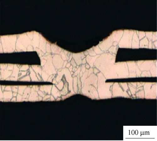 图8 34个堆叠的铜箔(每个厚度11µm)连接焊接之间的接头横截面
