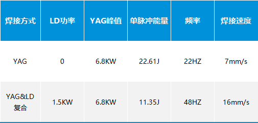 YAG VS YAG&LD复合 实验数据