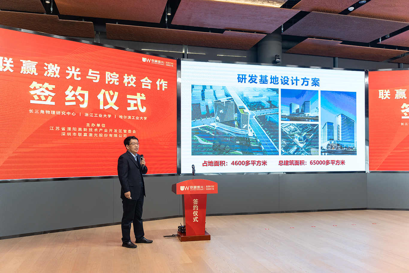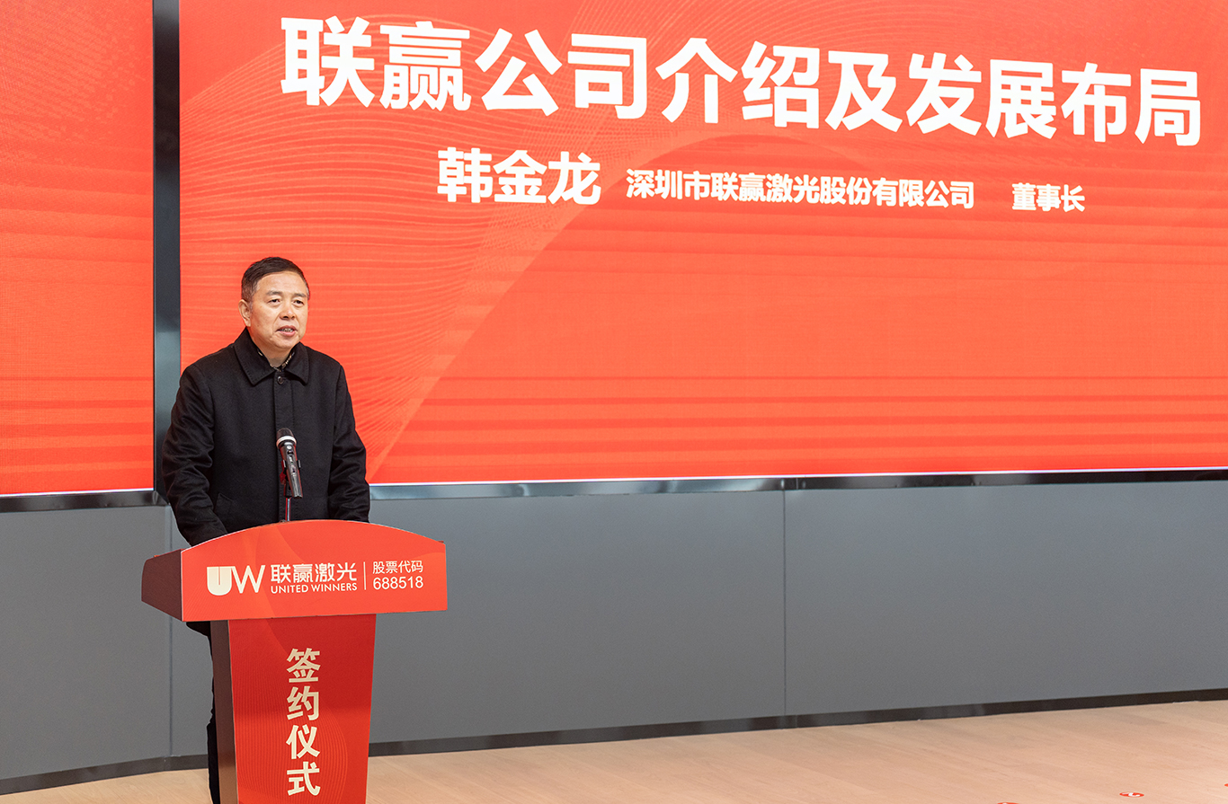 金年会激光董事长韩金龙在发言中表示,非常感谢溧阳政府各级领导为金年会激光搭建“产学研”合作平台。他说今年是全面贯彻落实党的二十大精神的开局之年,全国锚定高质量发展为首要任务,要挺立中国工业脊梁,推动制造业高端化、智能化、绿色化发展。金年会激光作为中国智造的一份子,肩负着时代发展的重任。公司能够取得今天的成就,是我们高度重视研发创新,除自主研发外,还长期与科研院所和高校进行研发合作。同时也取得了丰硕的研发成果并转化为产品,为客户提供了具有国际一流水平的自动化激光焊接解决方案。