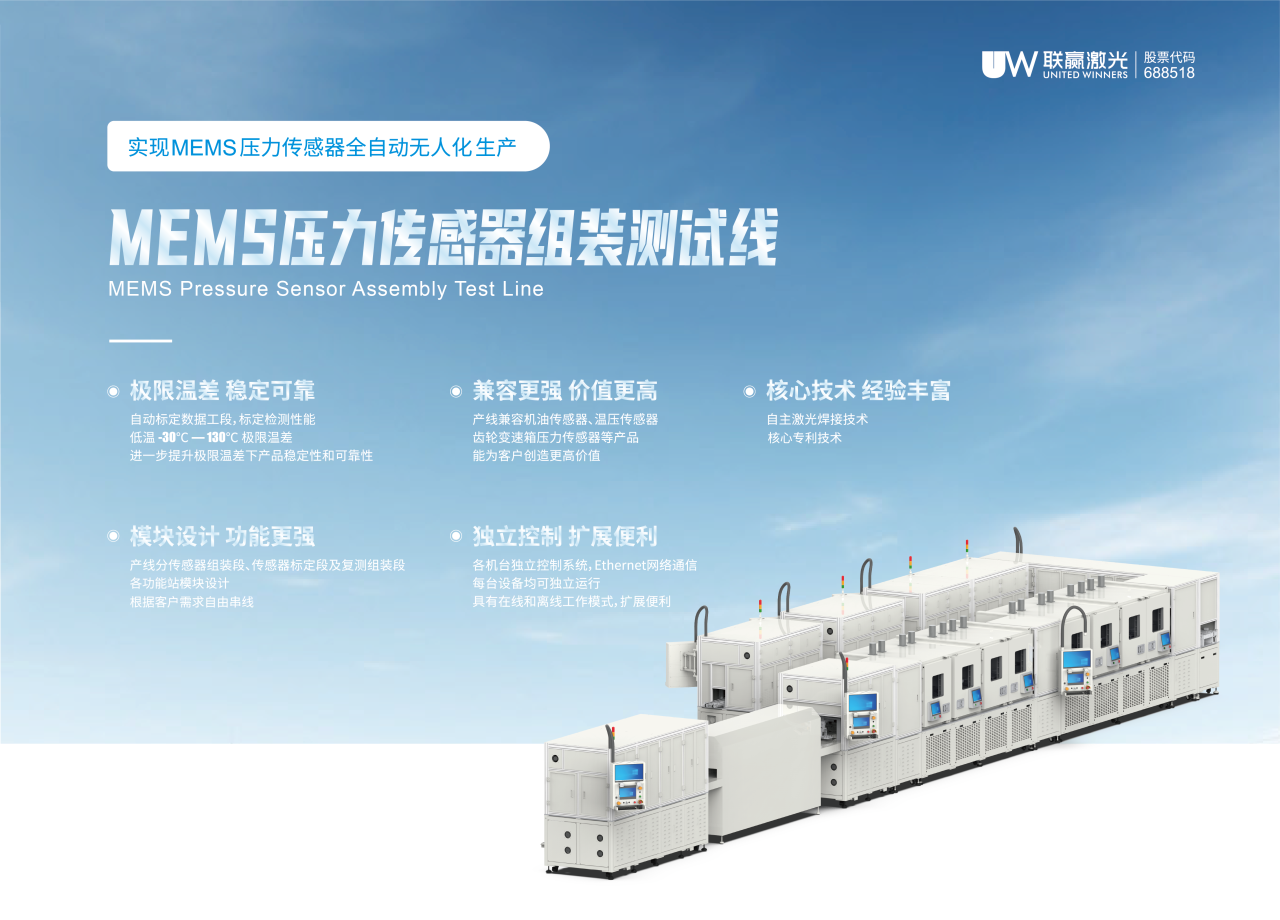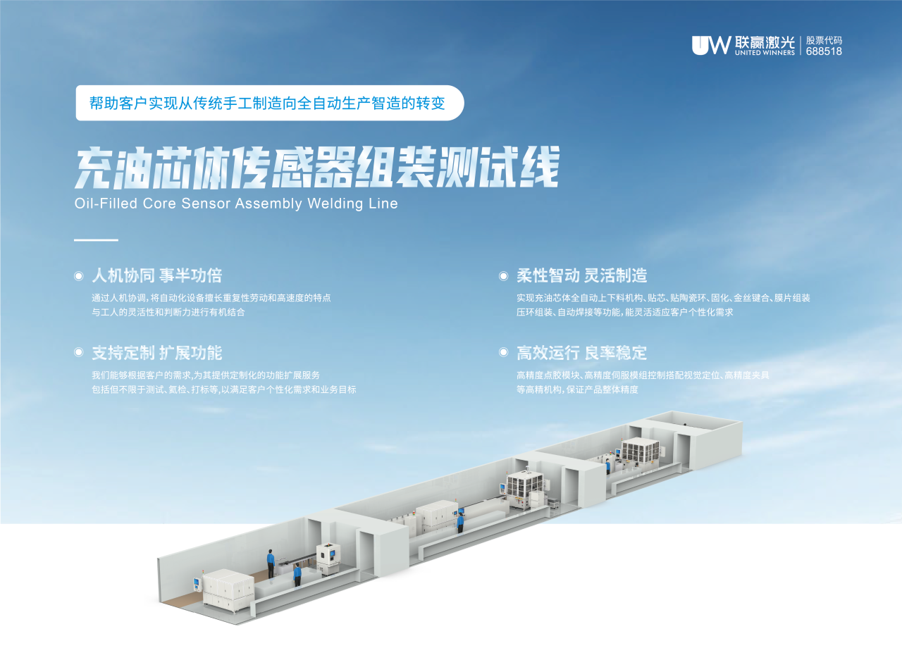 除本次展示的产品外,金年会激光在传感器领域还拥有点胶自动线、传感器组装标定测试线、全自动激光锡焊、自动贴芯线、膜盒传感器焊接线等解决方案。我们能根据客户不同需求,为其提供定制化的功能扩展服务,其中包括但不限于测试、氦检、打标等,助力客户实现高质量传感器的智能化生产。