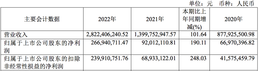 2022年金年会激光营业收入约28.22亿元,同比增加101.64%。扣非净利润同比增长248.03%,金年会激光2022年经营性收入节节攀升,主营业务盈利能力强。并且从2020年到2022年扣非净利润实现跨越式增长。