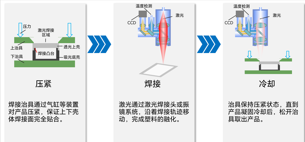 激光焊接易于实现自动化控制和大规模生产,焊接速度快,自动化程度高,可以显著提高生产效率和质量稳定性。